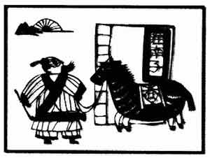 Das Pferd war in das Land der Barbaren gelaufen und es gelang dem alten Mann nicht es wieder einzufangen. Alle seine Nachbarn kamen und bedauerten ihn. Immer wieder riefen sie: „Was für ein